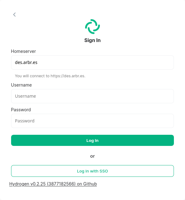 | Homeserver : des.arbr.es Username : ton identifiant ou nom d'utilisateur Password : ton mot de passe | |