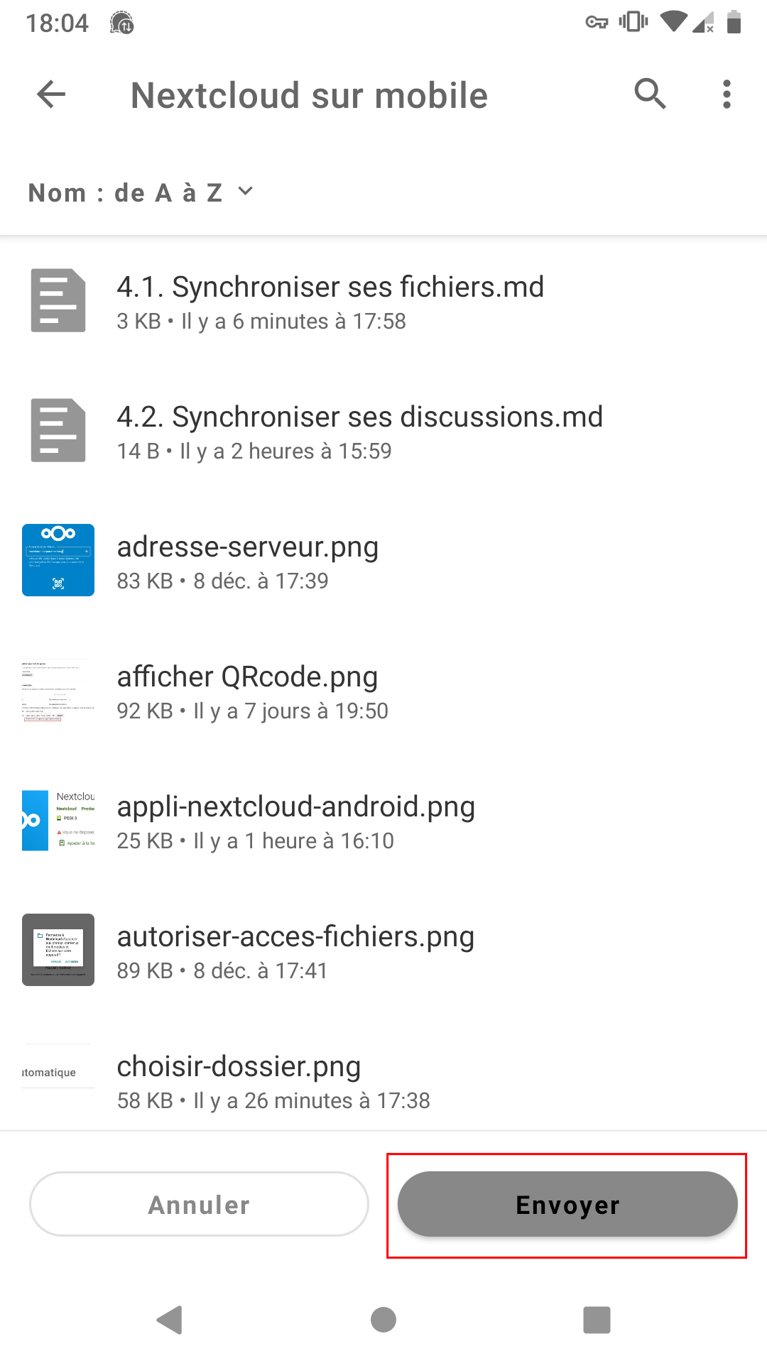 Envoyer un fichier depuis votre téléphone vers Nextcloud